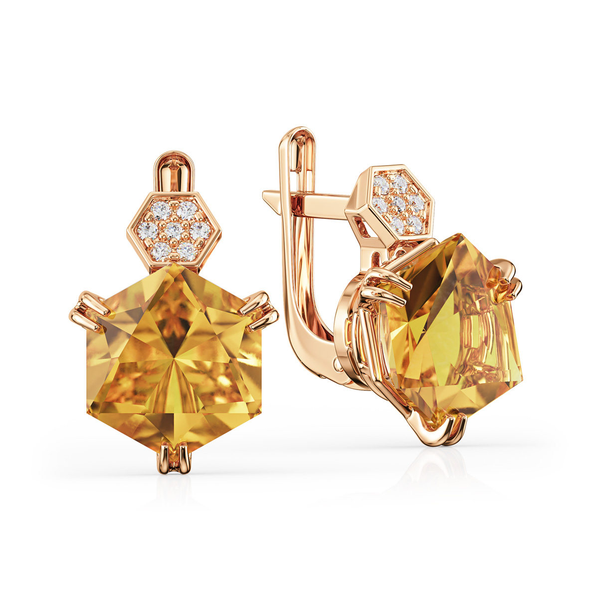 Gold earrings with citrine and cubic zirkonia. Article 449776