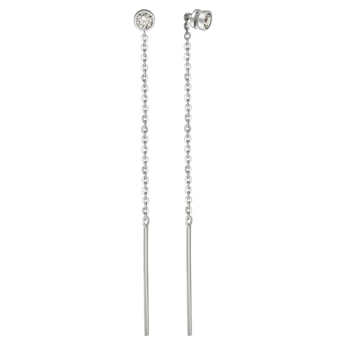 Вишукані золоті сережки-протяжки з фіанітами із колекції "Де Кольє" – втілення витонченого стилю та сучасної елегантності. Виконані з білого золота 585 проби, вражають своїм мінімалістичним, але ефектним дизайном, який чудово доповнює будь-який образ. Центральним акцентом є фіаніт, який виблискує на світлі, створюючи ніжне сяйво. Цей камінь, акуратно закріплений в оправі, розташований біля основи, створюючи ефект легкості та невагомості. Довгий, витончений ланцюжок, який плавно спускається вниз, завершується тонким золотим стрижнем, додаючи прикрасі геометричної чистоти та завершеності. Поєднання їх з кольє або підвіскою додасть образу неповторної гармонії, відображаючи сучасний стиль і елегантність.