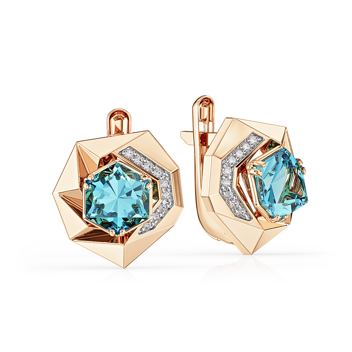 Золоті сережки з блакитним топазом і фіанітами. Артикул 441841