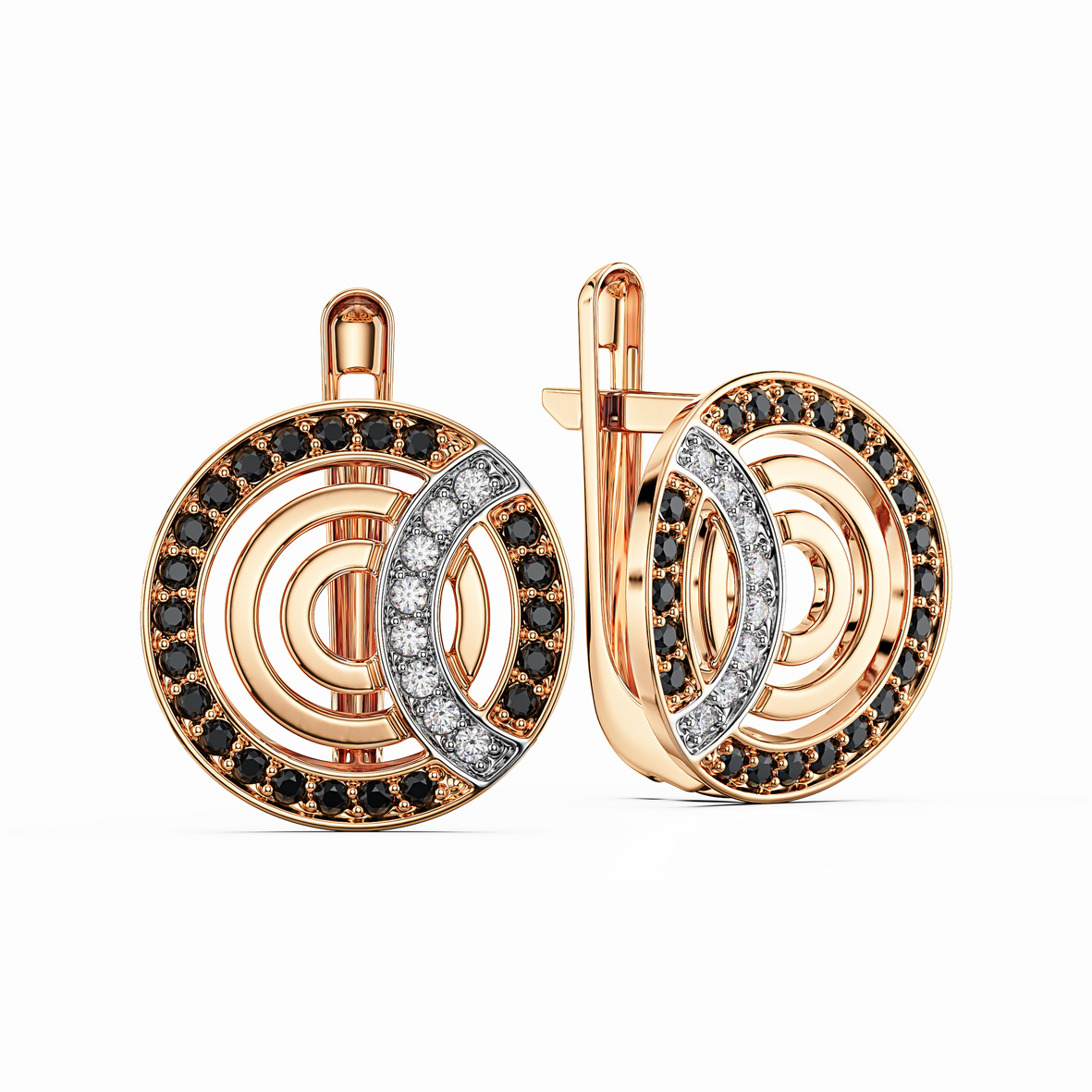 Дуже сподобалося поєднання чорних і світлих каменів. За рахунок цього сережки виглядають цікавіше, ніж просто класичні. Сіли ідеально. Не тиснуть, замок тримає добре. Виглядають дорого.