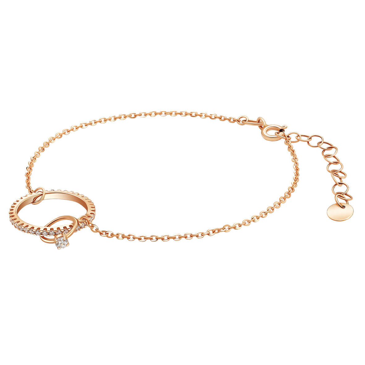 Золотий браслет з фіанітами – це чудовий витвір ювелірного мистецтва, що передає витонченість та грацію. Виготовлений з червоного золота 585 проби, сяє теплим блиском, притягуючи захоплені погляди. Браслет складається з елегантного ланцюжка, прикрашеного різноманітними елементами, рівномірно розподіленими по всій довжині. Маленькі золоті намистини чергуються з витонченими вставками, в яких виблискують фіаніти. Камені різного розміру та форми, акуратно інкрустовані в золоті оправи, надають додатковий блиск та грайливість, роблячи його унікальним і привабливим. Доповнений сережками з колекції "Де Кольє", цей браслет надає образу гармонійність і завершеність.