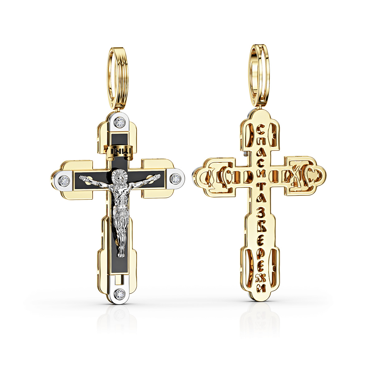 Золотий хрестик з діамантами і емаллю. Артикул 720030В (копия) за найвигіднішою ціною в інтернеті стане чудовою покупкою для себе або на подарунок близькій людині. Детальний опис товару на вкладці “Характеристики”.