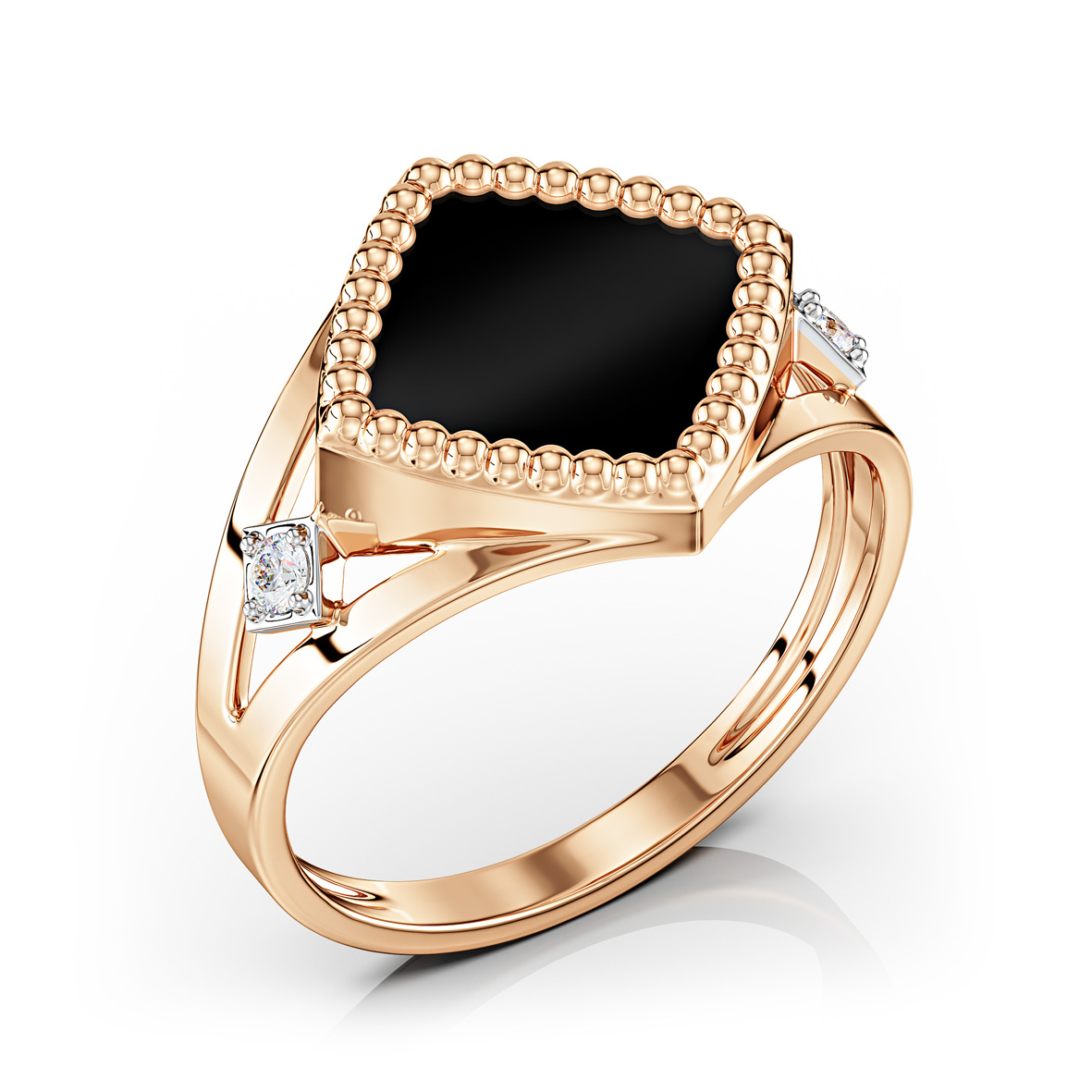 Золотое кольцо с агатом и фианитами. Артикул 369640 размер 17 по самой выгодной цене в интернете станет отличной покупкой для себя или на подарок близкому человеку. Подробное описание товара на вкладке “Характеристики”.