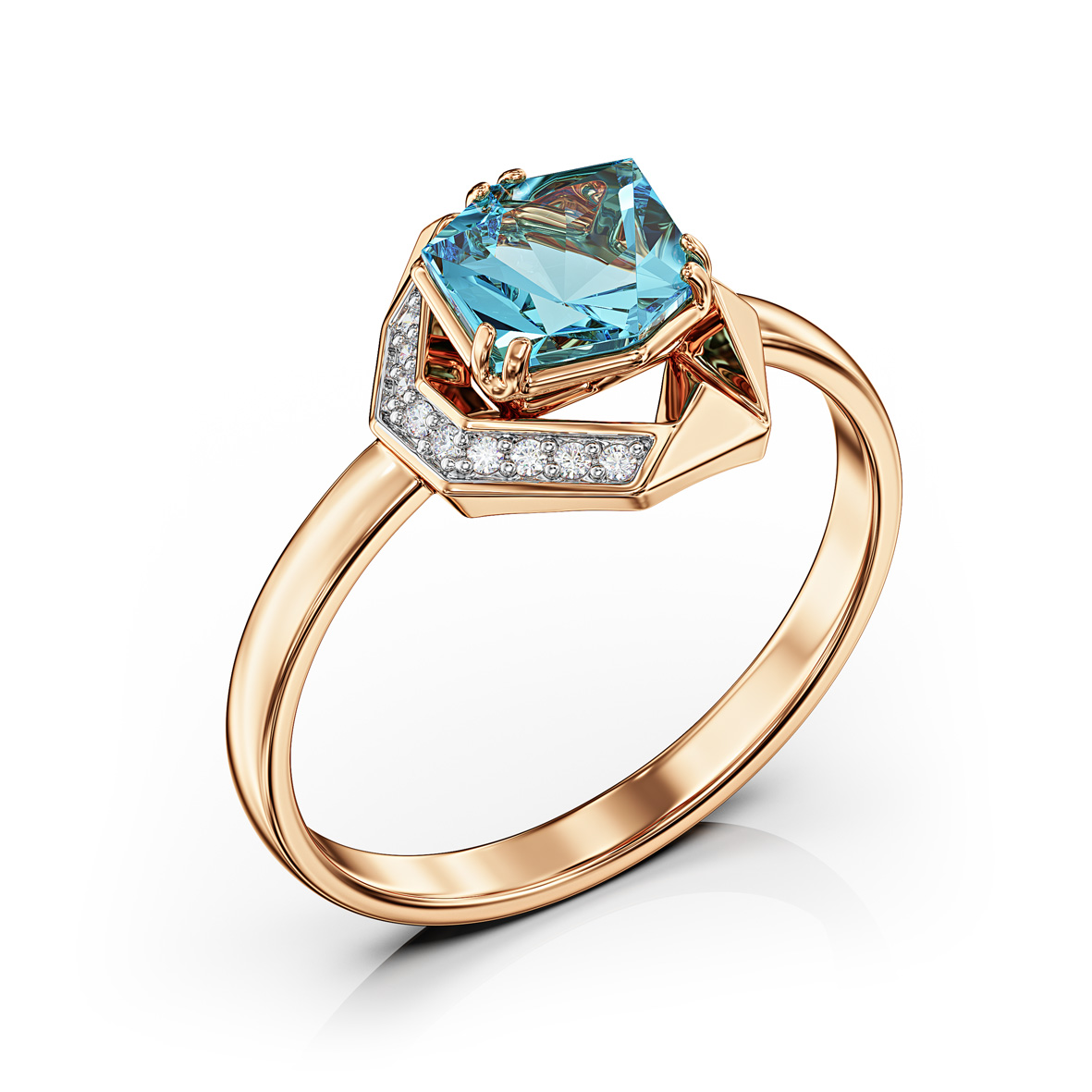 Золотое кольцо с голубым топазом и фианитами. Артикул 361737 размер 18.5 по самой выгодной цене в интернете станет отличной покупкой для себя или на подарок близкому человеку. Подробное описание товара на вкладке “Характеристики”.
