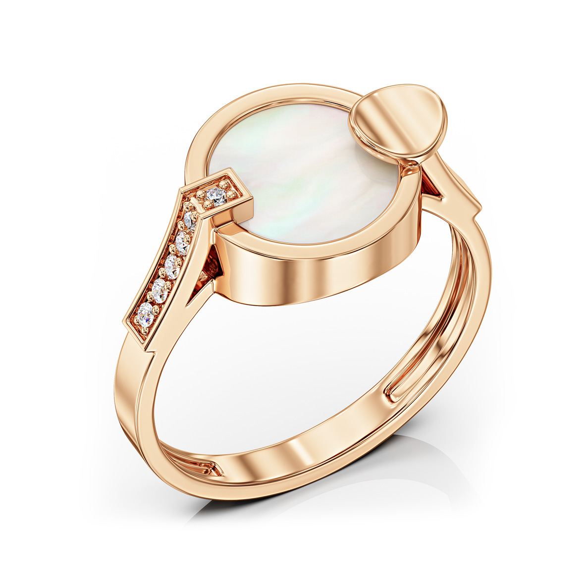 Золотое кольцо с перламутром и фианитами. Артикул 360619 размер 16.5