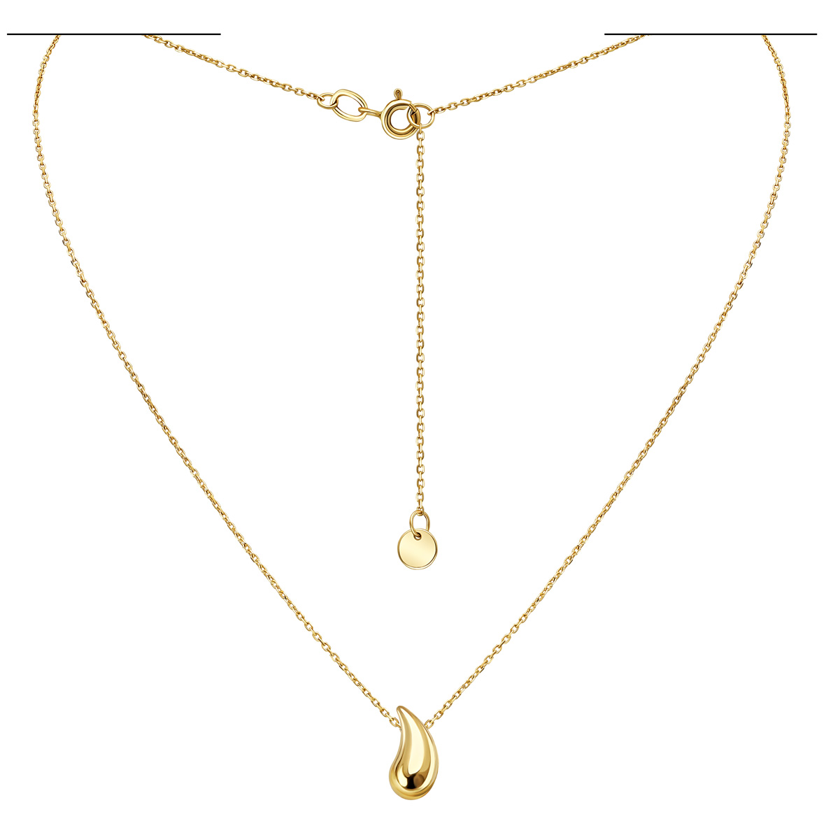Золотое колье из коллекции "Де Колье" — изысканное украшение, в котором гармонично сочетаются элегантность формы и выразительность деталей. Изделие выполнено из лимонного золота 585 пробы и дополнено подвеской в форме капли — узнаваемого, но в то же время нестандартного силуэта. Плавные изгибы формы передают ощущение движения и легкости, а идеально отполированная поверхность создает зеркальный эффект, отражая свет и усиливая благородный блеск металла. Подвеска надежно зафиксирована на тонкой, но прочной цепочке, которая обеспечивает комфортную посадку. Особенно выразительно оно раскрывается в комплекте с серьгами и кольцом из той же коллекции, формируя цельный и утонченный образ.