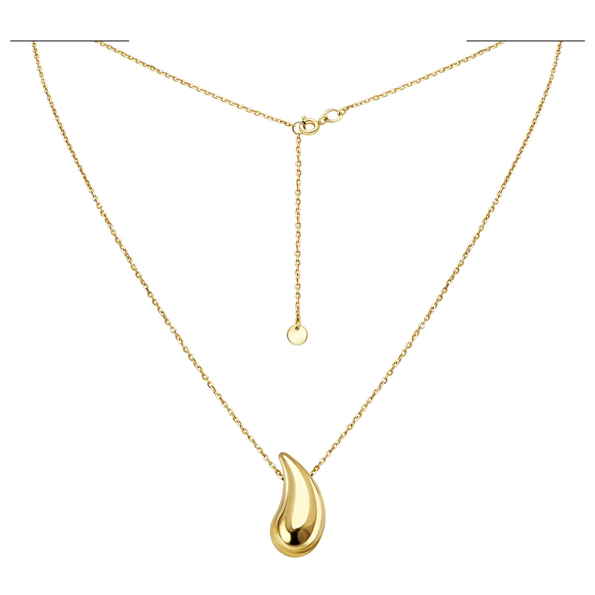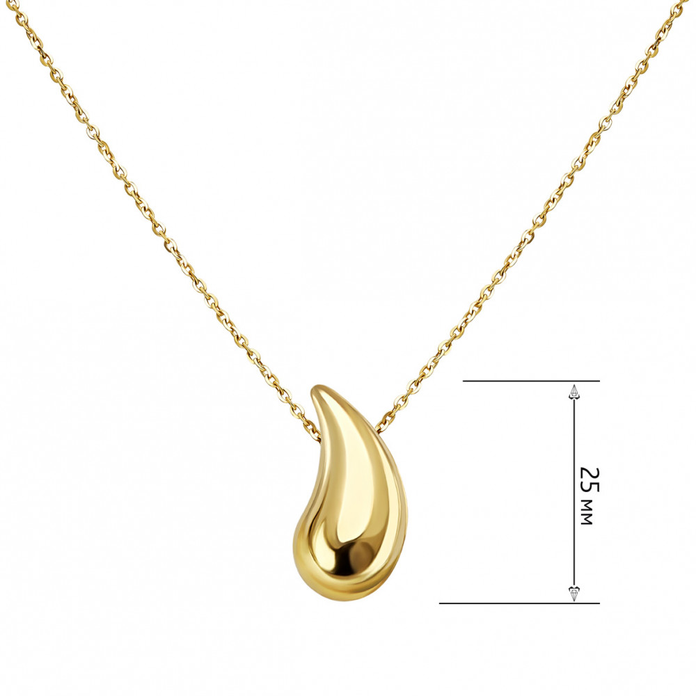 Золотое колье из коллекции "В ритме TANGO" — изысканное украшение, в котором гармонично сочетаются элегантность формы и выразительность деталей. Изделие выполнено из лимонного золота 585 пробы и дополнено подвеской в форме капли — узнаваемого, но в то же время нестандартного силуэта. Плавные изгибы формы передают ощущение движения и легкости, а идеально отполированная поверхность создает зеркальный эффект, отражая свет и усиливая благородный блеск металла. Подвеска надежно зафиксирована на тонкой, но прочной цепочке, которая обеспечивает комфортную посадку. Особенно выразительно оно раскрывается в комплекте с серьгами и кольцом из той же коллекции, формируя цельный и утонченный образ.