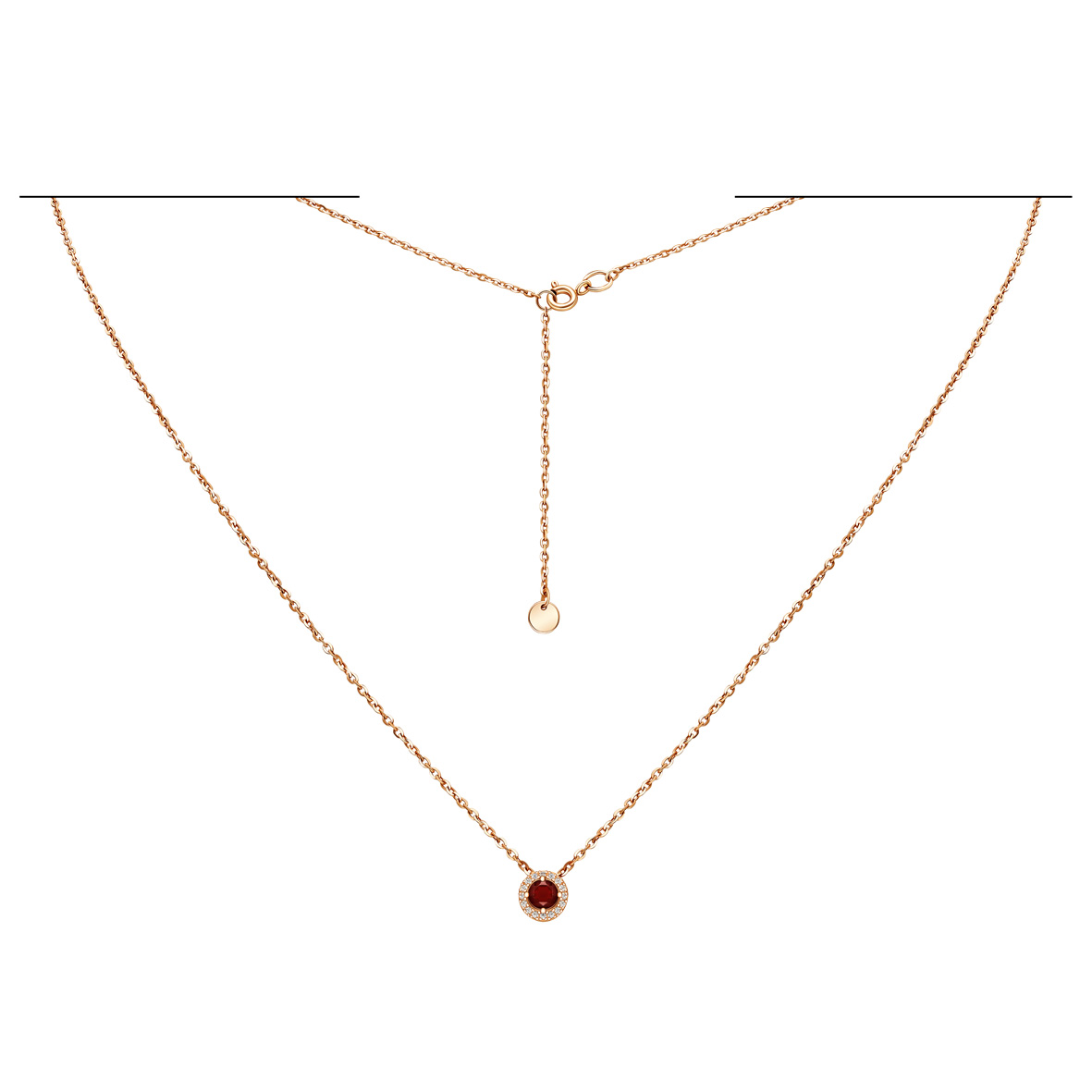 Золотое колье с гранатом и фианитами. Артикул 864635 размер 400 по самой выгодной цене в интернете станет отличной покупкой для себя или на подарок близкому человеку. Подробное описание товара на вкладке “Характеристики”.