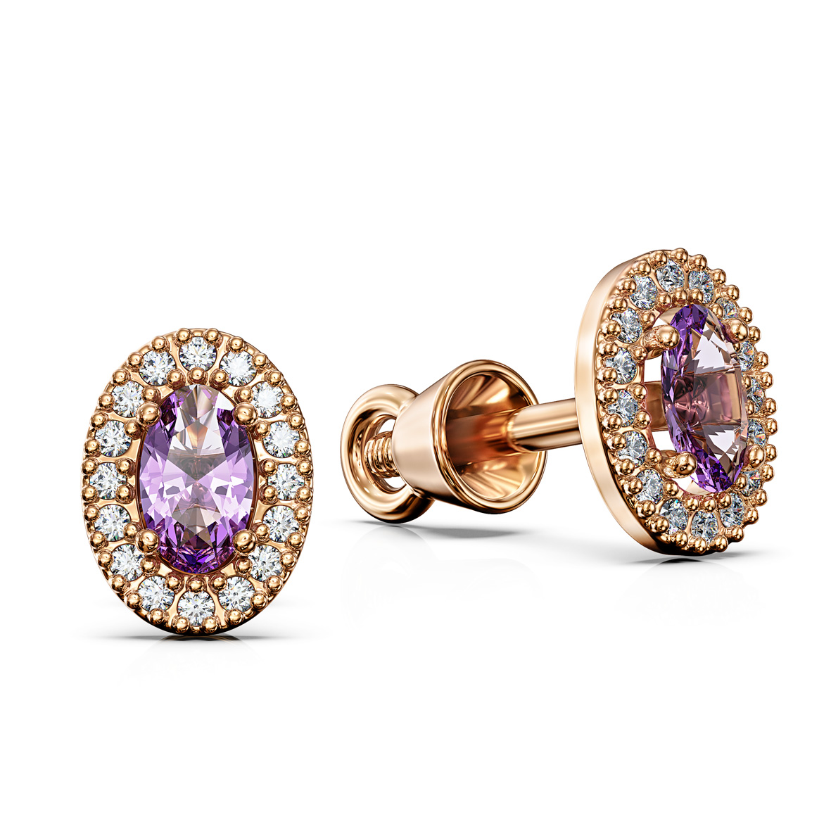Золотые серьги-пуссеты с аметистом и фианитами. Артикул 573152