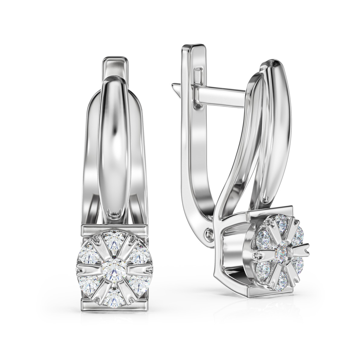 Золотые серьги с бриллиантами из коллекции "Diamond Club" — изысканное сочетание графичной строгости и сияющей утонченности. Модель выполнена из белого золота 585 пробы. Основу дизайна составляет удлиненный силуэт с зеркально отполированной поверхностью, плавно переходящий в декоративную часть с центральным акцентом — композицией из бриллиантов, собранных в виде стилизованного цветка. Каждому камню отведено отдельное пространство, подчеркнутое четко очерченными белыми лепестками, что усиливает визуальный рельеф и выводит на передний план сияние каждой грани. Особенно элегантно они смотрятся в сочетании с кольцом или кулоном создавая завершенный, продуманный образ с нотками классики и современного изящества.